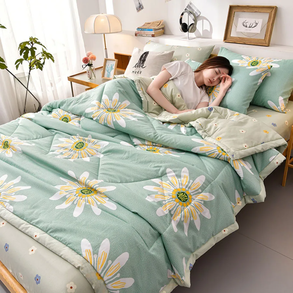 لحاف مشجر فخم يجمع بين الأناقة والراحة مع تصميم مزخرف يناسب غرف النوم الراقية. مصنوع من خامات عالية الجودة تضمن التهوية والنعومة، مما يوفر لك نومًا هادئًا ومريحًا طوال الصيف.